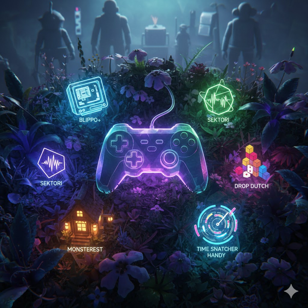 - 타임 스내쳐 핸디 (Time Snatcher Handy): 시간을 멈춰 탄막을 피하는 독특한 메커니즘을 가진 액션 탄막 슈팅 게임이에요. 이름 그대로 시간을 훔치는 능력을 활용해 시시각각 쏟아지는 탄막을 피하고 적을 공격하는 방식이에요. 고난도 탄막 슈팅의 쾌감에 전략적인 시간 제어 요소를 추가해서, 기존의 탄막 게임에서는 경험할 수 없던 새로운 차원의 액션 경험을 선사해요. 2025년 11월 27일에 정식 출시되어, 높은 난이도에 도전하는 것을 좋아하는 게이머들에게 좋은 평가를 받고 있어요.