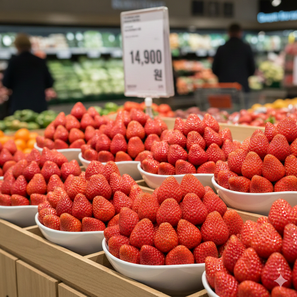 - 신선 식품 이미지 선점: 딸기는 겨울철 마트 신선 식품 경쟁력을 상징하는 얼굴과 같아요. 30% 할인을 통해 우리 마트에서 사야 가장 신선하고 저렴한 과일을 살 수 있다는 강력한 브랜드를 소비자에게 각인시키려는 의도예요.