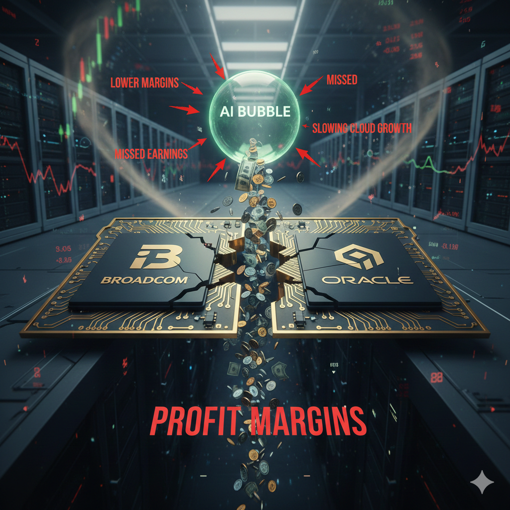 최근 AI 인프라의 양대 축인 브로드컴과 오라클의 실적 발표는 시장의 과도한 AI 거품론에 찬물을 끼얹는 충격파였어요. AI 붐을 타고 고공행진하던 기술주 밸류에이션에 근본적인 의문을 던지고 있어요. 브로드컴은 AI 반도체 매출 증가에도 불구하고 예상치에 미달하는 마진율을 공개했고, 오라클은 클라우드 인프라 부문의 성장 둔화와 기대에 못 미치는 실적을 발표했어요. 이 두 공룡 기업의 현실적인 성적표는 단순히 일회성 이벤트로 치부하기 어려운, AI 인프라 투자 사이클의 숨겨진 민낯을 보여줘요.
