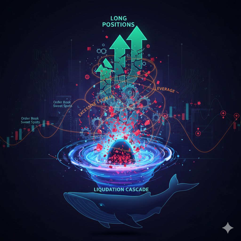대규모 롱 포지션 청산이 반복되는 또 다른 이유는 특정 가격대에 청산 물량이 집중되어 있기 때문이에요. 고배율 롱 포지션이 구축될 때, 투자자들은 일반적으로 직전 저점이나 강력한 지지선 근처에 청산가를 설정해요. 시장의 대형 플레이어, 즉 고래들은 이 오더북의 스위트 스팟을 정확히 알고 있어요.