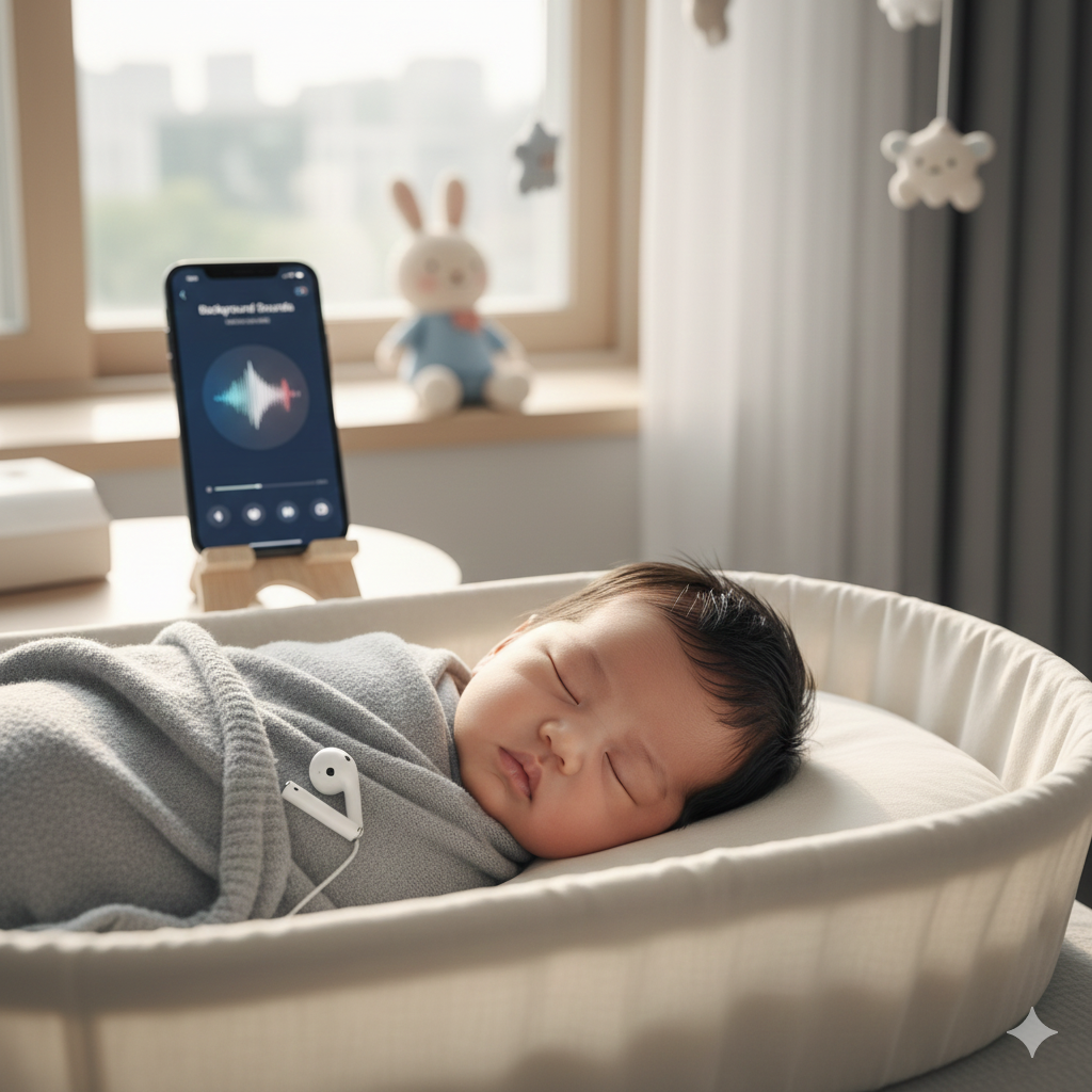 아이폰 배경 사운드 기능은 별도 앱 설치 없이도 신생아의 깊은 잠을 유도하는 강력한 백색소음을 제공해요. 제어 센터 설정만으로 즉시 구동할 수 있어서 육아 퇴근 시간을 앞당기는 가장 효율적인 도구에요.