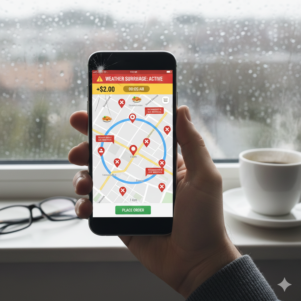 배달 거리가 먼 맛집은 기상 악화 시 가장 먼저 앱에서 사라져요. 배달 플랫폼은 라이더 안전을 위해 악천후 시 주문 가능 거리를 평소 4km 수준에서 1km 이하로 제한하는 시스템을 운영해요. 이 제한에 걸리지 않으려면 장바구니에 미리 음식을 담아두고 기상 변화 직전에 단 1초라도 빨리 결제를 완료해야 해요.