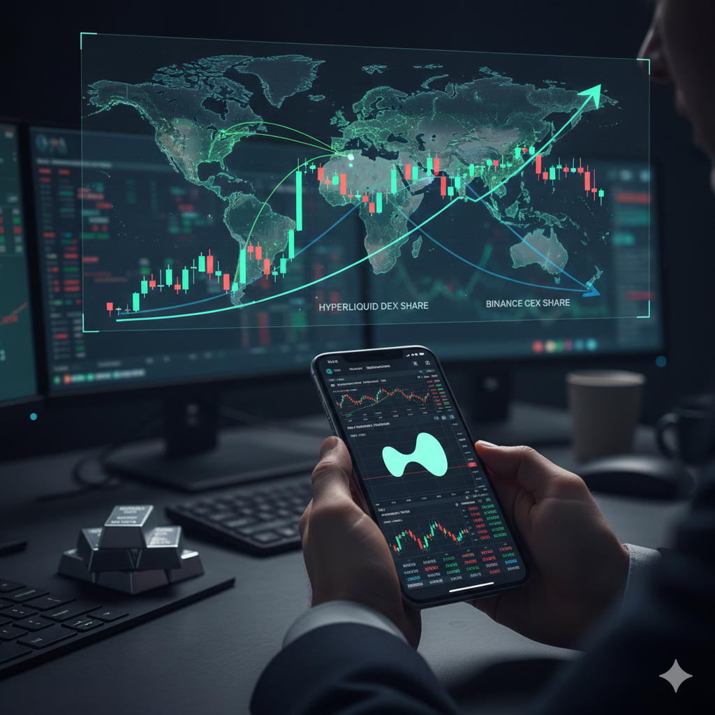 중앙화 거래소의 상징인 바이낸스가 긴장하고 있어요. 탈중앙화 선물 거래소인 하이퍼리퀴드가 바이낸스 전체 선물 거래량의 14% 수준까지 턱밑 추격에 성공했거든요. 단순히 반짝하는 유행이 아니에요. 전 세계 탈중앙화 무기한 선물 시장의 약 80%를 한때 장악했던 저력을 바탕으로, 이제는 70% 이상의 점유율을 꾸준히 유지하며 독주 체제를 굳히는 중이에요. 가상자산을 넘어 은 같은 실물 자산 거래까지 흡수하는 하이퍼리퀴드의 성장 비결을 아주 쉽고 자세하게 분석해 드릴게요.