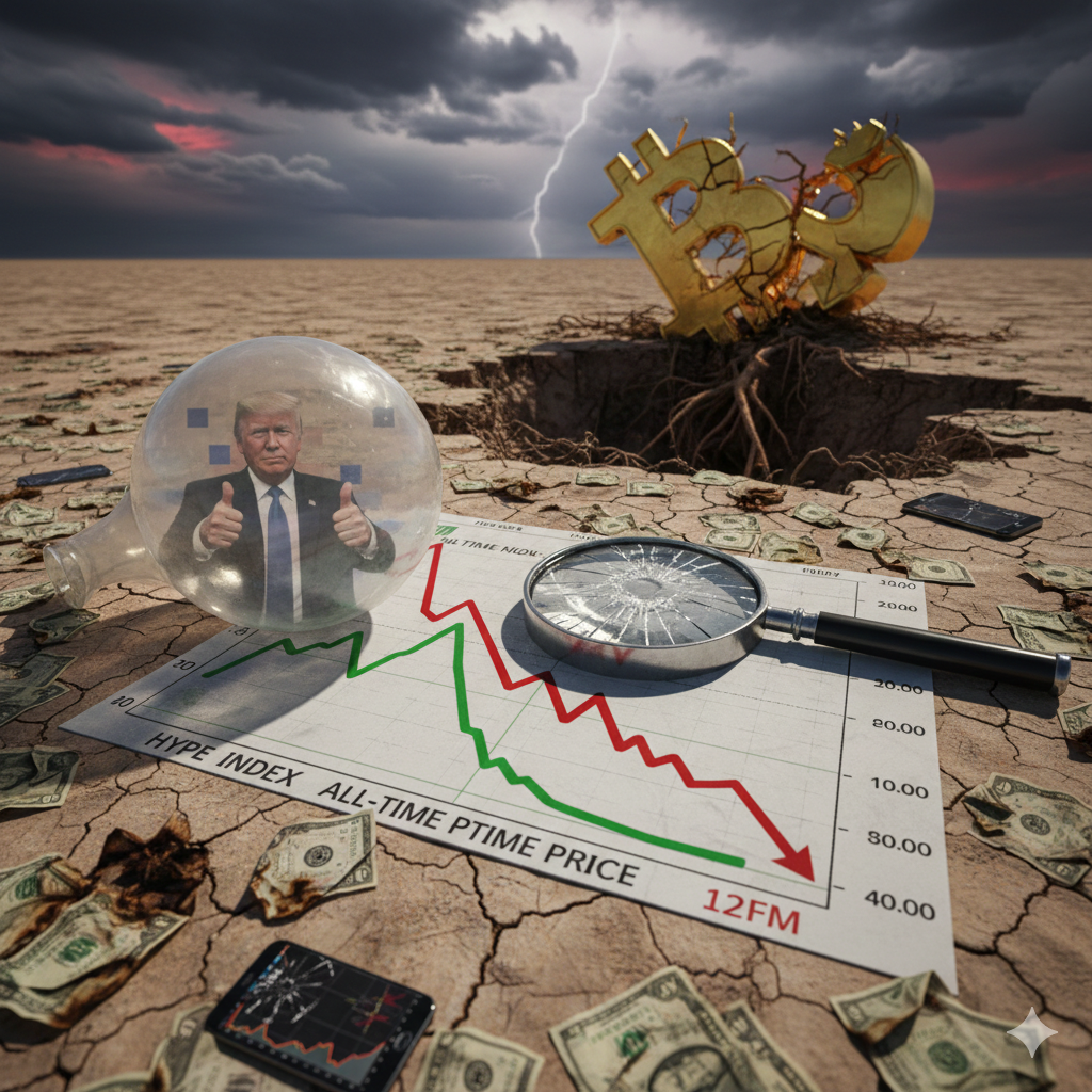 시장은 이미 호재를 가격에 다 반영해두고 있었는데 정작 뉴스가 현실이 되자 더 이상 기대할 것이 사라진 거예요. 이를 전문 용어로 선반영이라고 부르는데 이번 트럼프 펌프는 그 정도가 너무 심해서 하이프 지수가 가격보다 훨씬 높게 치솟는 현상을 보였어요. 기대라는 풍선이 너무 커져서 작은 바늘 하나에도 펑 하고 터져버린 셈이에요.