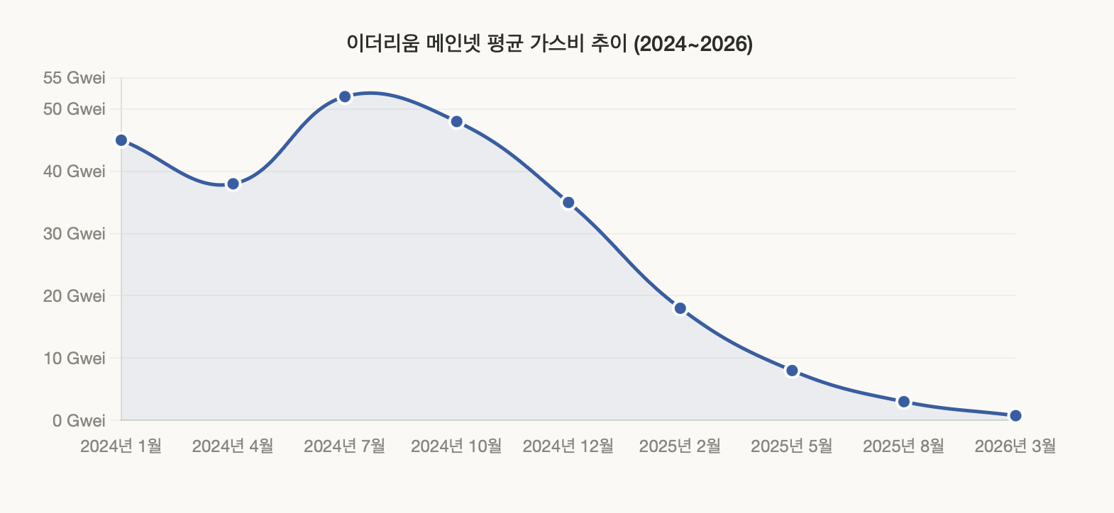 이더리움 메인넷 수수료가 낮아진 가장 큰 이유는 데이터 저장 방식의 변화 덕분이에요. 과거에는 레이어2 네트워크들이 모든 거래 기록을 메인넷에 비싸게 남겨야 했지만 이제는 전용 데이터 공간을 이용해요. 이 과정에서 메인넷은 고가의 연산 공간에서 레이어2의 보안을 책임지는 든든한 기반 시설로 성격이 변했어요. 저는 이 변화를 보면서 메인넷 가스비가 10분의 1 수준으로 줄어드는 과정을 직접 지켜보았고 실제 전송 비용이 체감상 거의 사라진 것을 확인했어요.